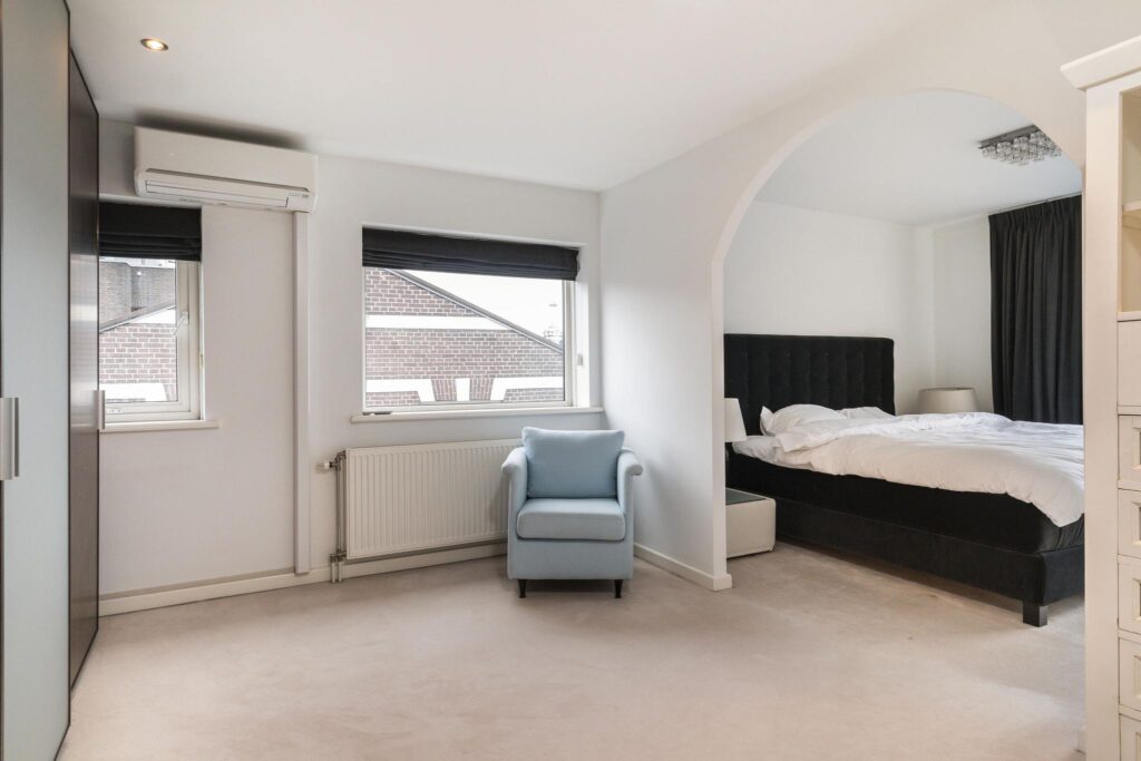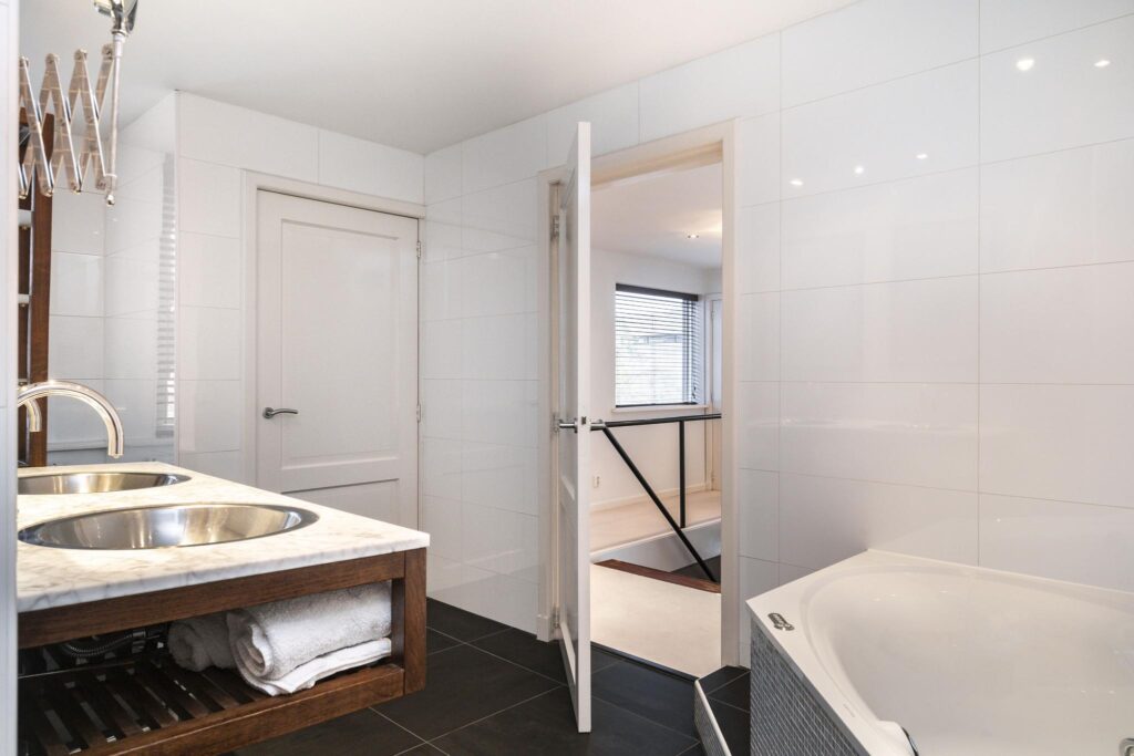 of A1 grote steden als Amsterdam, Utrecht en Amersfoort binnen no-time! Indeling Begane grond: separate opgang met trap naar eerste verdieping. Eerste verdieping: binnenkomst in hal welke toegang geeft tot een separaat toilet, slaapkamer, dakterras (zuidoostligging) en de U-vormige living met keuken. De moderne keuken is voorzien van diverse inbouwapaprtauur zoals: 5-pits gasfornuis, vaatwasser, combi oven, koel-/vriescombinatie. De eerste verdieping is strak afgewerkt met o.a. glad gestucte wanden en inbouwspots. Tweede verdieping: overloop, twee in grootte variërende slaapkamers, dakterras (noordoostligging) en riante badkamer met whirlpool, dubbele wastafel, design radiator, inloopdouche en toilet. Bijzonderheden: - Riant appartement verdeeld over 2 verdiepingen met 3 slaapkamers; - Centrale locatie op loopafstand NS station en centrum Hilversum; - Woonoppervlak 189m² NEN gemeten; - 2 royale dakterrassen (22m² en 18 m²); - Energielabel E geldig t/m 1 november 2033; - 2e verdieping v.v. airco; - Parkeren middels vergunning; - Oplevering kan snel.