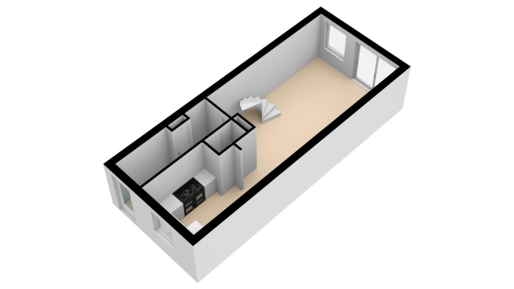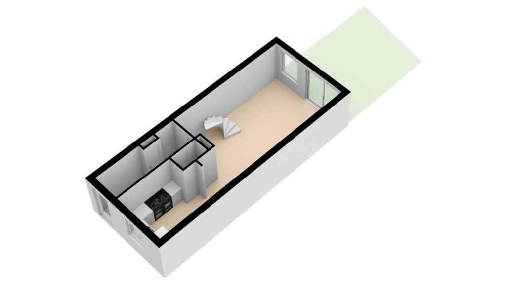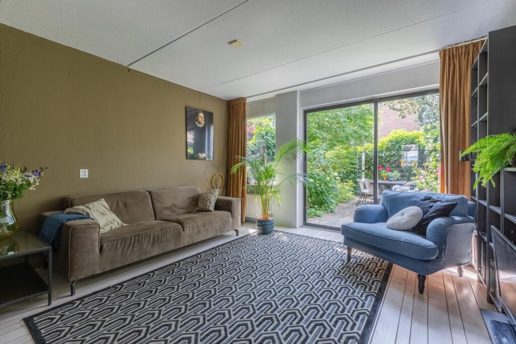 Begane grond: entree, hal, modern toilet, meterkast, woonkamer over de volle breedte aan de achterzijde met schuifpui naar besloten achtertuin op het zuiden. In deze oase van rust heeft u absoluut niet het gevoel in het hart van het centrum te wonen.