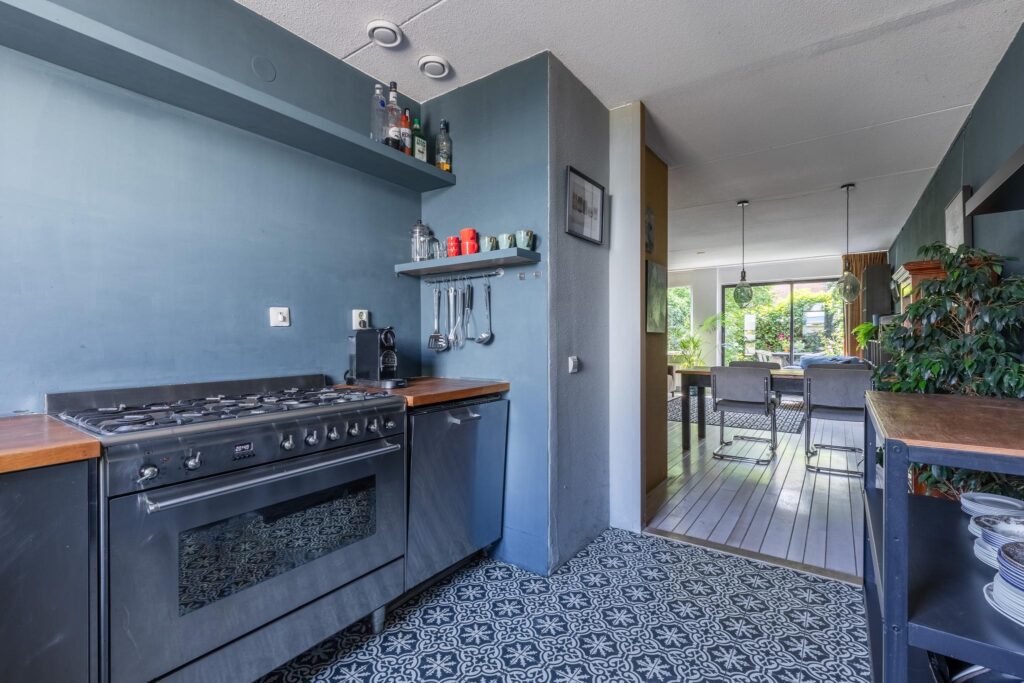 Aan de voorzijde is de ruime keuken gesitueerd voorzien van diverse inbouwapparatuur en groot gasfornuis voor de echte kookliefhebber.