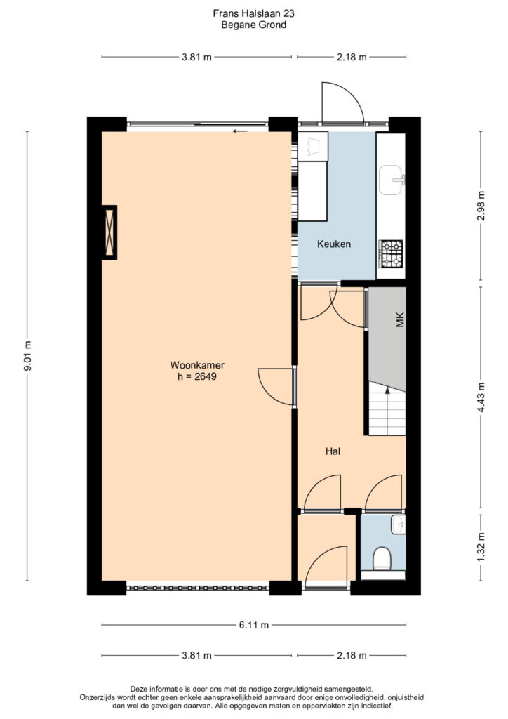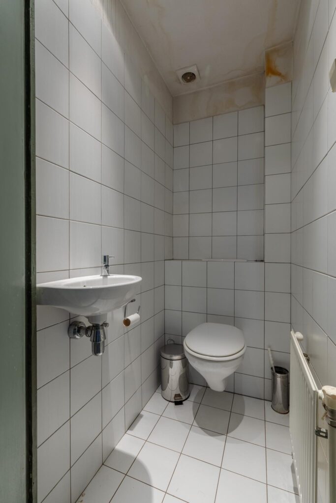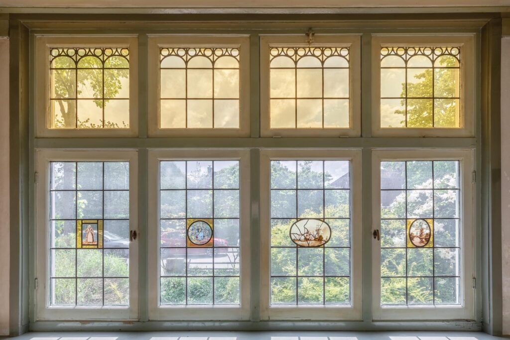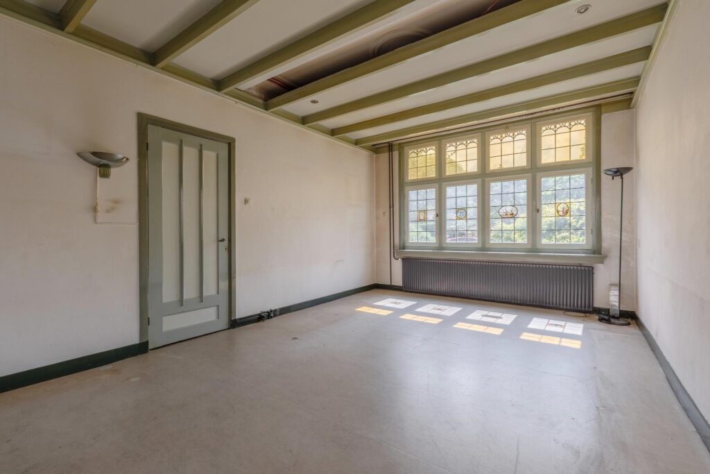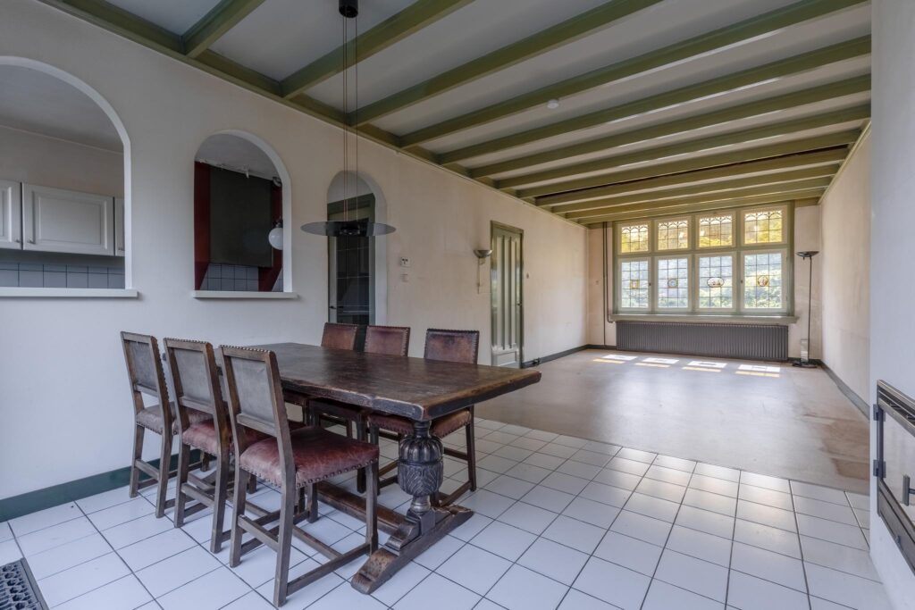 Begane grond: tochtportaal, ruime hal met toilet en fonteintje, trapkast, toegang tot de woon-/eetkamer met prachtige glas-in-lood ramen, hoge plafonds van ca. 2.65m en een schuipui naar de tuin. De open keuken bevindt zich aan de achterzijde tevens toegang tot de tuin.