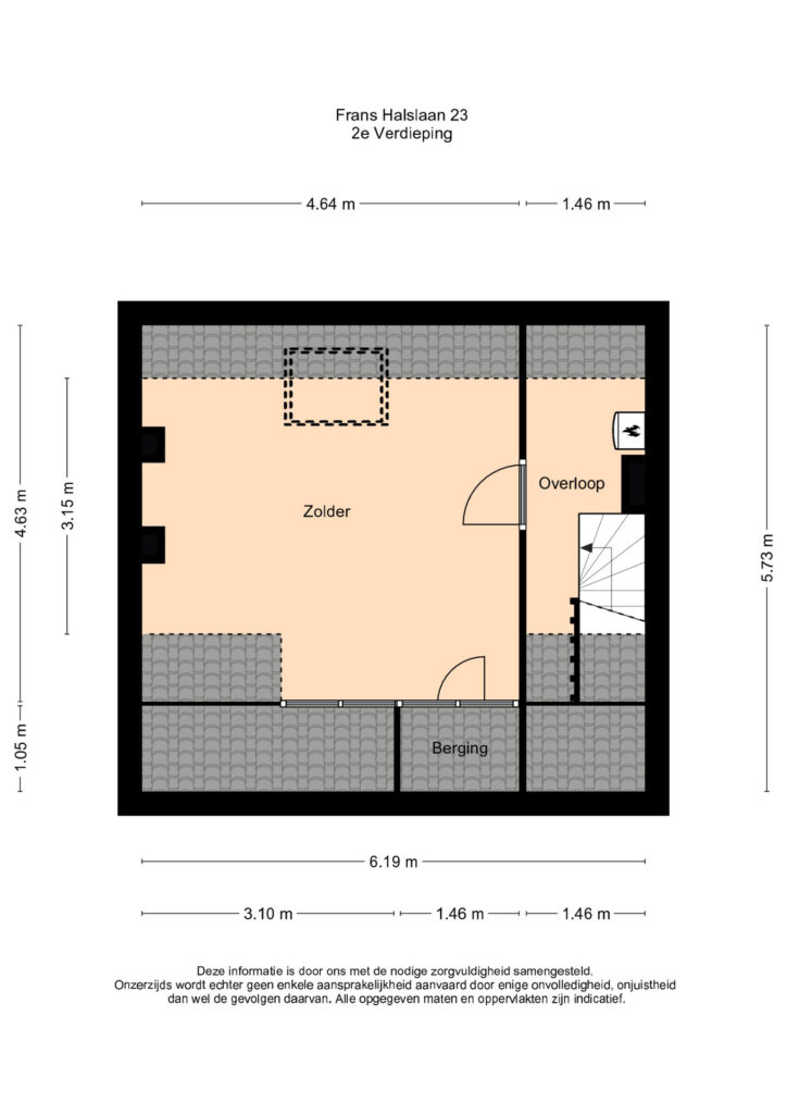 Tweede verdieping: middels vaste trapopgang bereikt u de tweede verdieping met een voorzolder met C.V. opstelling en een vierde (slaap)kamer v.v. dakkapel.