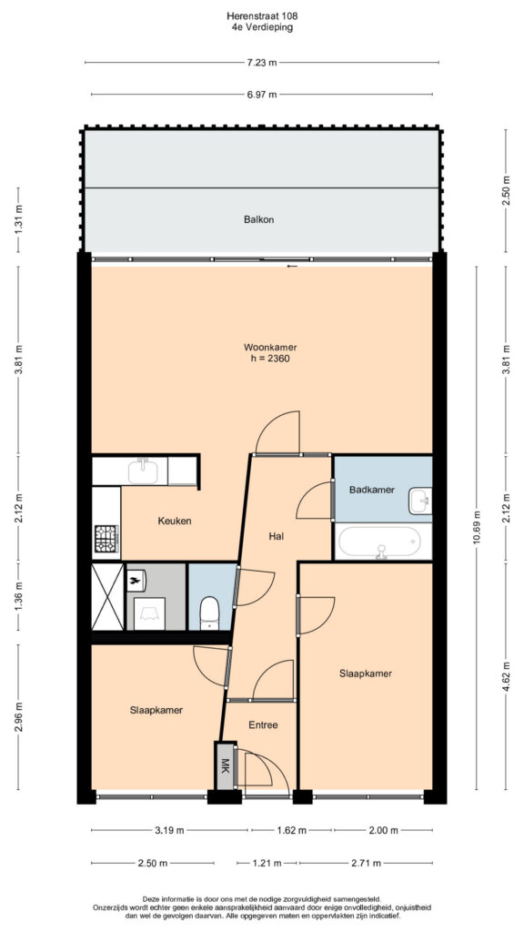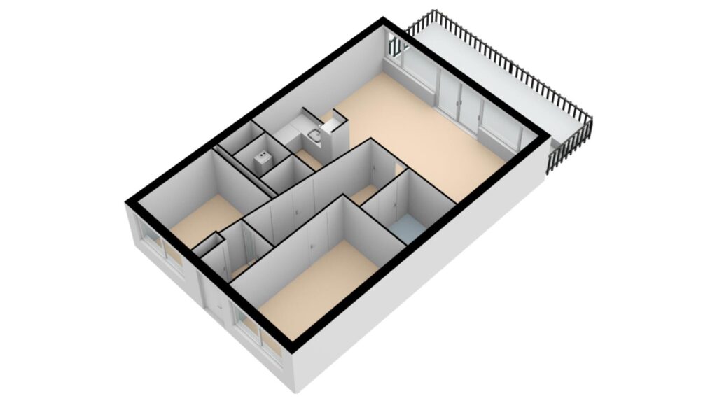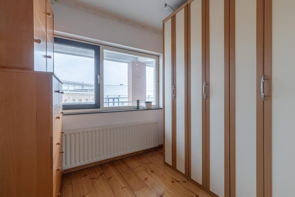 Twee slaapkamers waarvan de hoofdslaapkamer voldoende ruimte biedt voor een kledingkast.