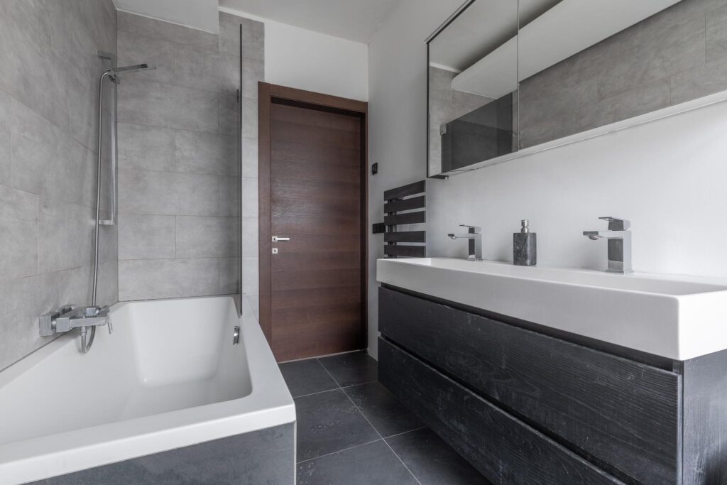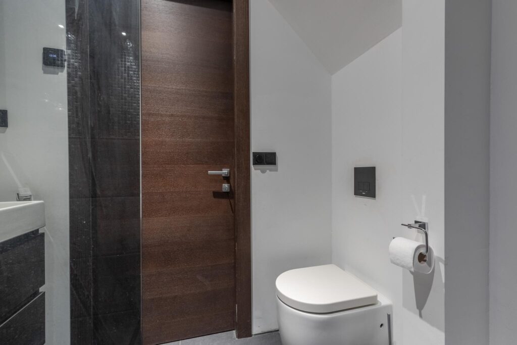De woning is voorzien van 2 badkamers waarvan één gelegen op de begane grond. Deze is strak afgewerkt en voorzien van ruime inloopdouche, wastafelmeubel en toilet.