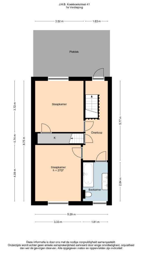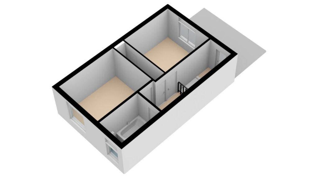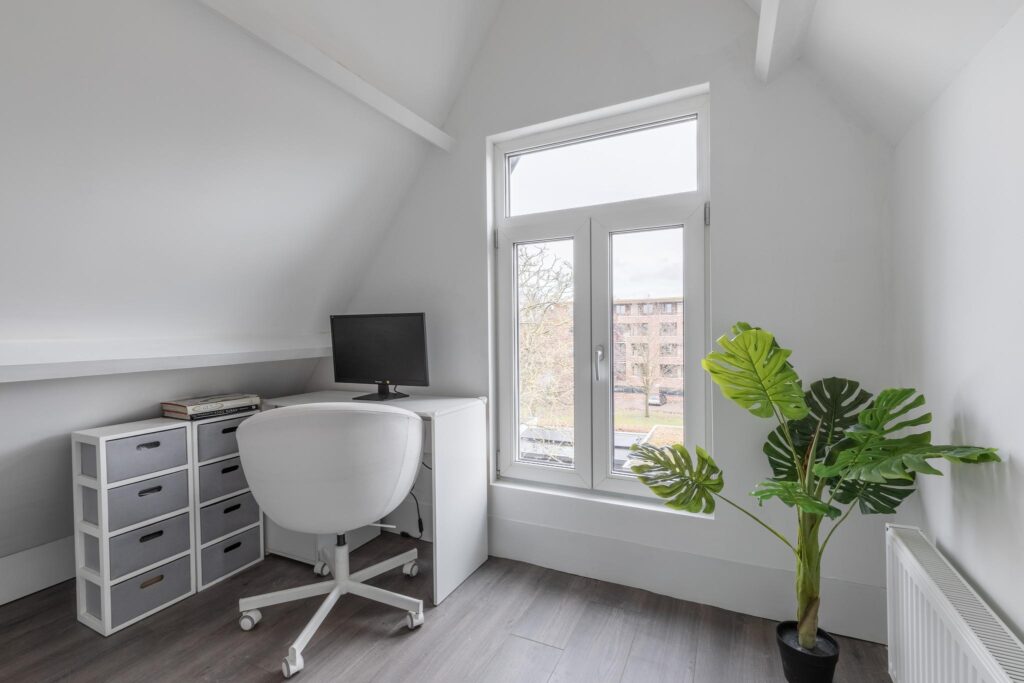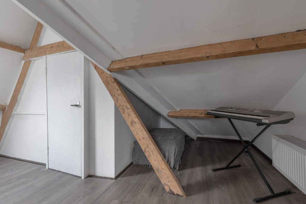 Op de ruime tweede verdieping is er voldoende ruimte voor opslag en toegang tot 2 slaapkamers c.q. werkkamer(s), waarvan de grootste kamer een plafondhoogte heeft van 2.82m!