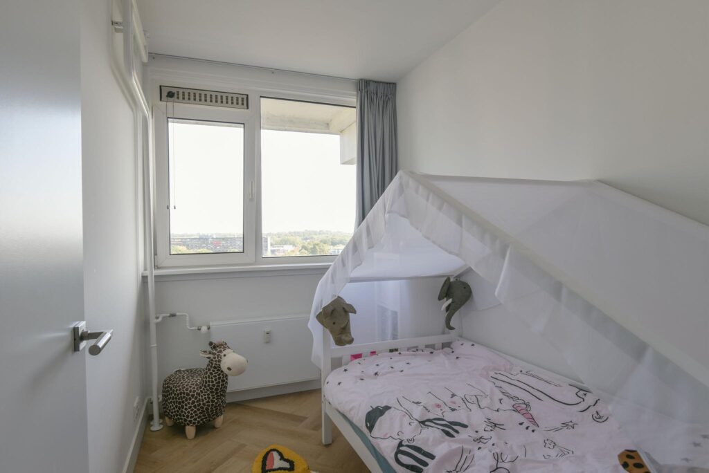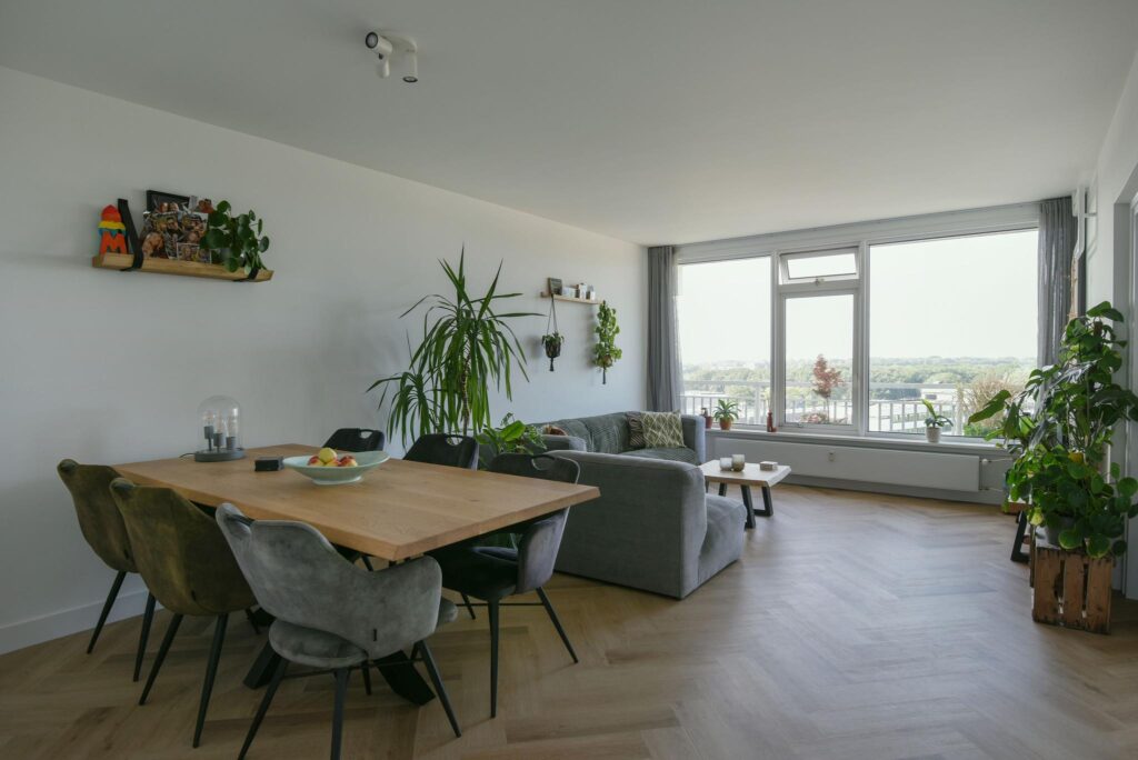In Hilversum Zuid, nabij het winkelcentrum "Kerkelanden" en openbaar vervoer gelegen compleet gerenoveerd luxe 4-kamer hoekappartement (ca. 91m²) met zonnig balkon en fantastisch uitzicht over de omgeving. Het appartement is gelegen op de 9e verdieping en is voorzien van liftinstallatie. Tevens beschikt het appartement over een berging en eigen parkeerplaats in de parkeergarage. Het gebouw beschikt over een veilige, goed verzorgde en afgesloten entree en 2 liften.