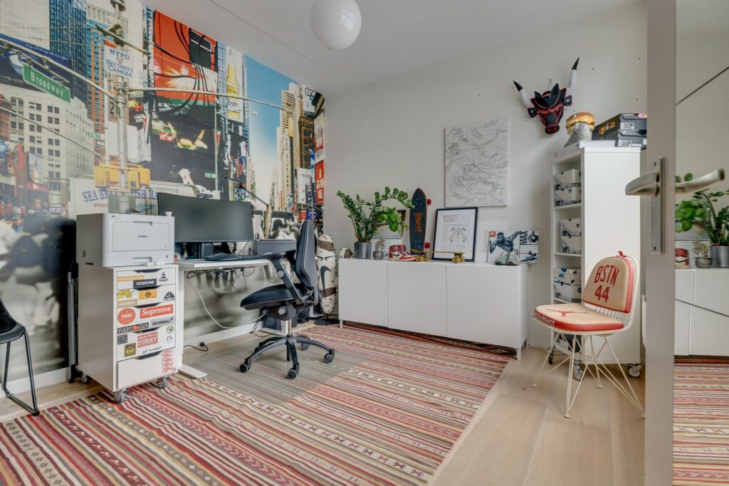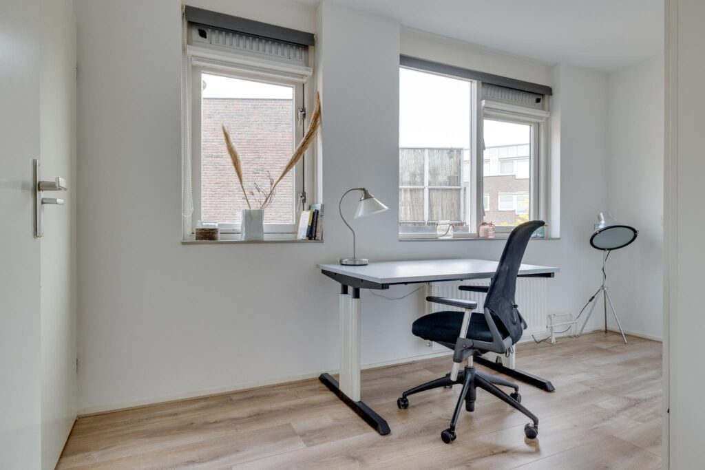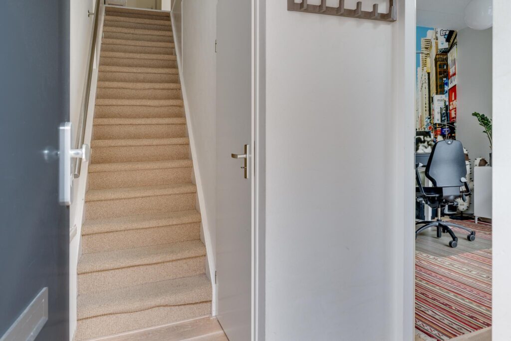 De woning is zodanig ingedeeld dat u op de begane grond desgewenst een eigen kantoor aan huis kunt vestigen zonder dat uw woongenot hieronder leidt.