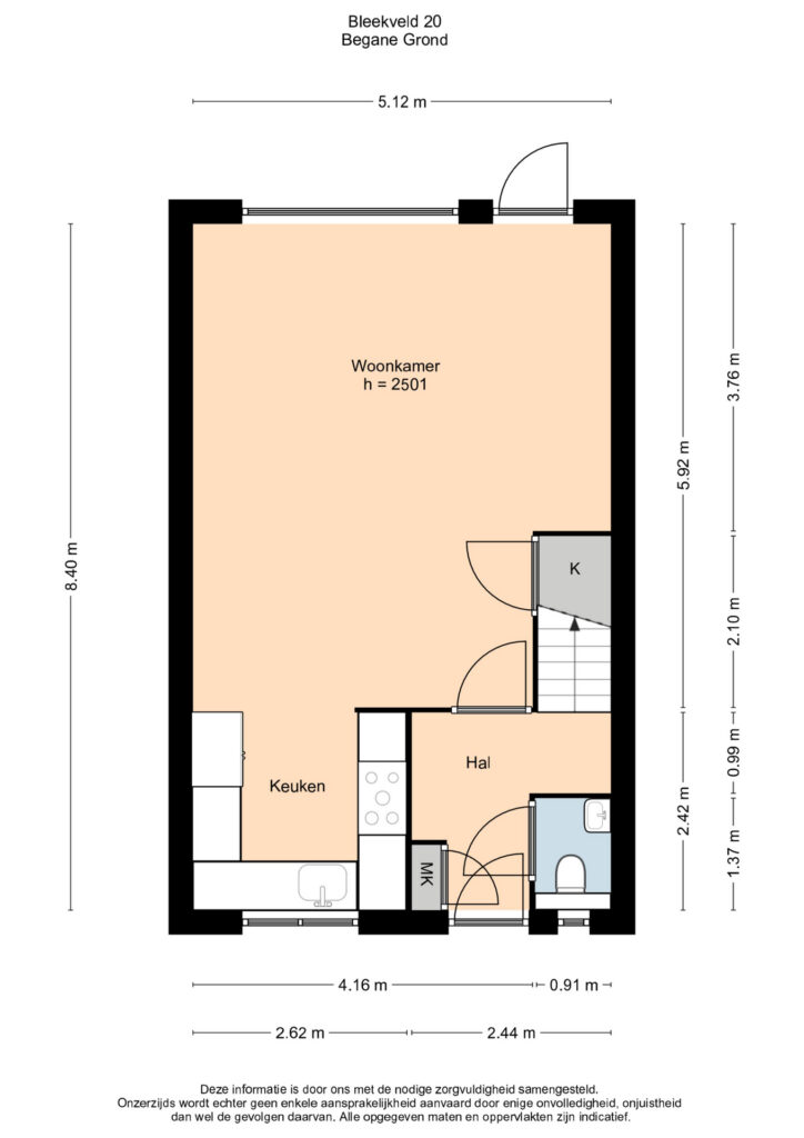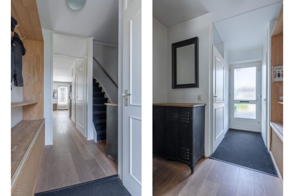 grond: binnenkomst in hal met toilet en meterkast, toegang tot de woon-/eetkamer. De moderne open keuken is gelegen aan de voorzijde en is voorzien van diverse inbouwapparatuur zoals: vaatwasser, 6-pits gasfornuis en Quooker. De lichte woonkamer aan de achterzijde heeft een doorgang naar de zonnige tuin op het oosten met stenen schuur en achterom.