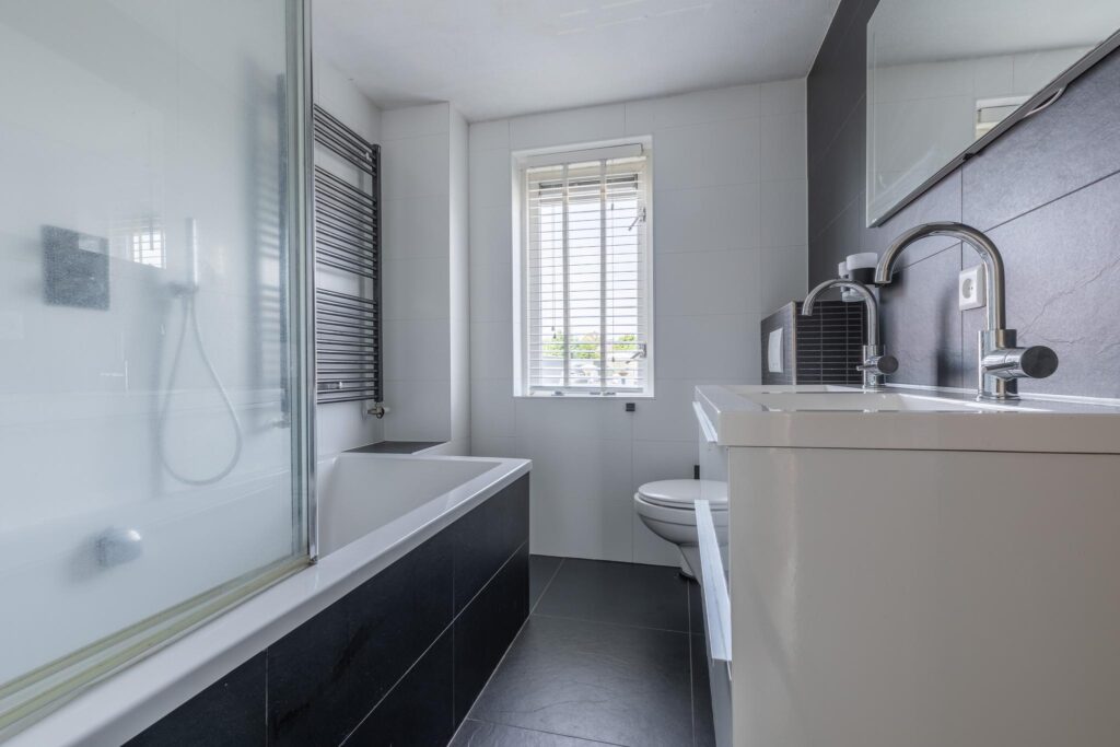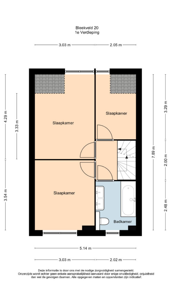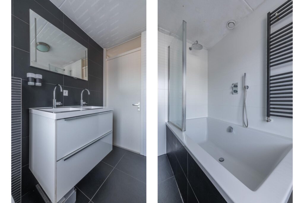 Eerste verdieping: overloop welke toegang geeft tot drie in grootte variërende slaapkamer en de badkamer met toilet, bad/douche en dubbele wastafel.