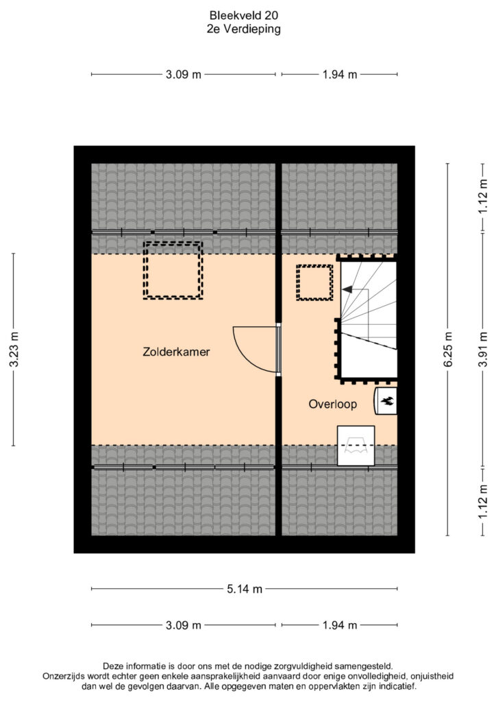 Tweede verdieping: middels vaste trapopgang bereikt u de zolderverdieping met voorzolder waar zich de wasmachine opstelling bevindt en een vierde slaapkamer v.v. dakkapel.