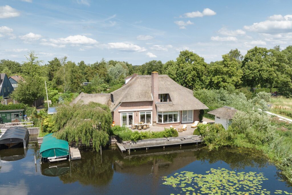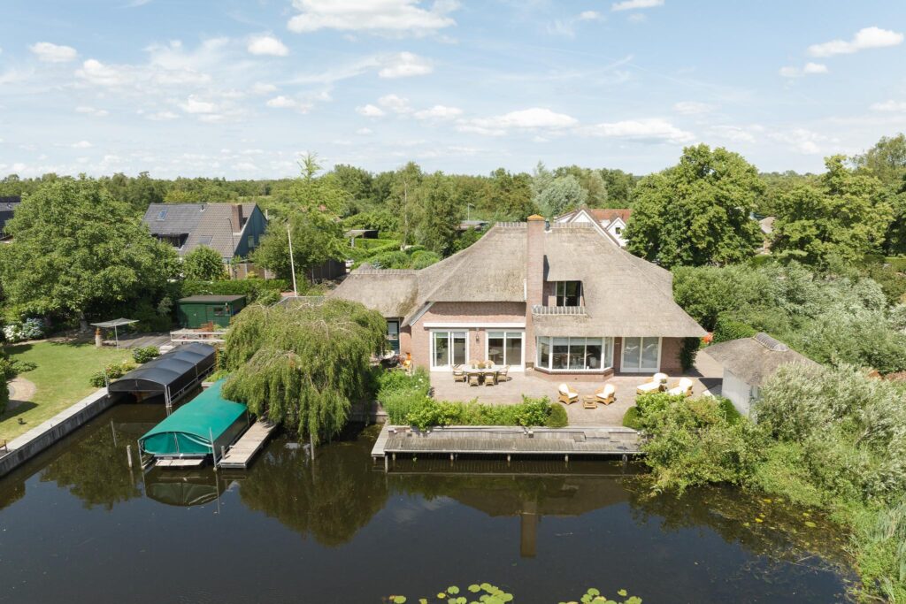 Eindelijk weer eens een ge-wel-dig vrijstaande onder architectuur gebouwde, traditionele, rietgedekte villa te koop in Loosdrecht. Een heerlijke villa met ruimte en rust, privacy en fantastisch uitzicht op water en flora, altijd in de zon (als deze schijnt).