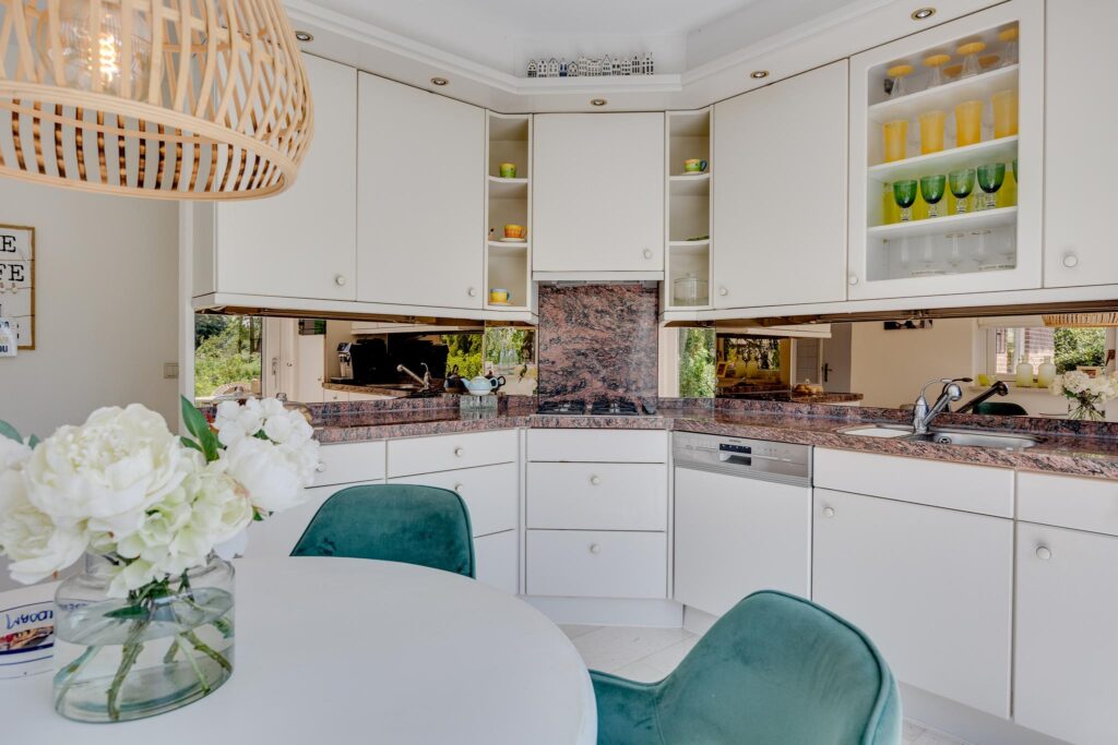 Ook de keuken heeft direct toegang tot het achterliggende terras en aansluitend is de bijkeuken met veel bergruimte en een wasmachine/droger opstelling.