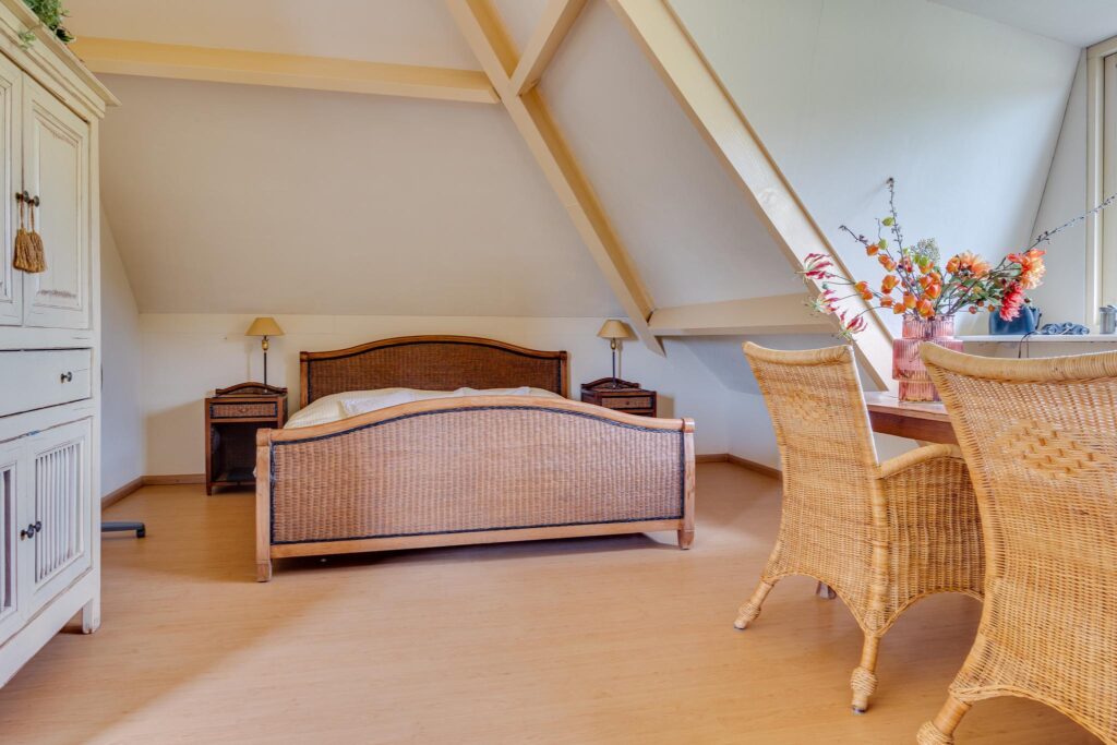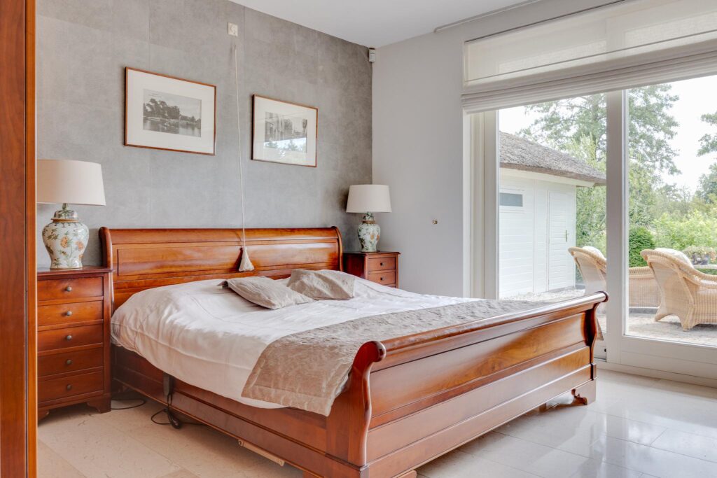 Eerste verdieping: royale slaapkamer met loggia en prachtig uitzicht op ’t kreekje;