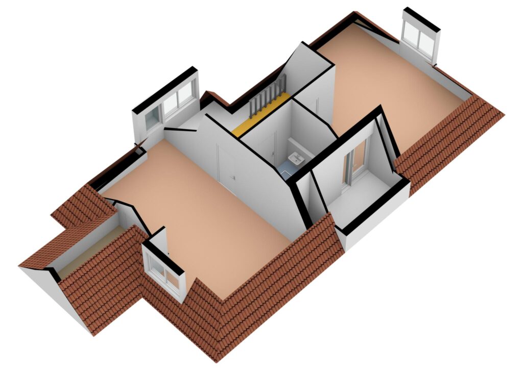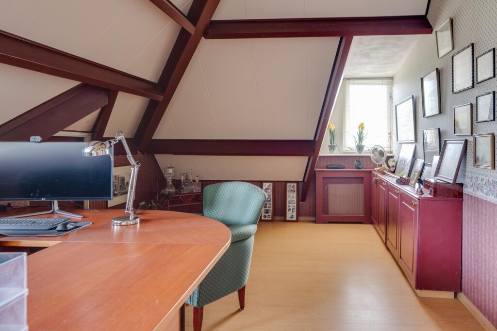 Een 2e slaapkamer, momenteel in gebruik als kantoor met veel bergruimte en zoldertje;