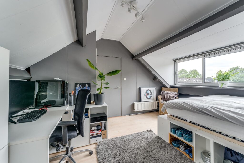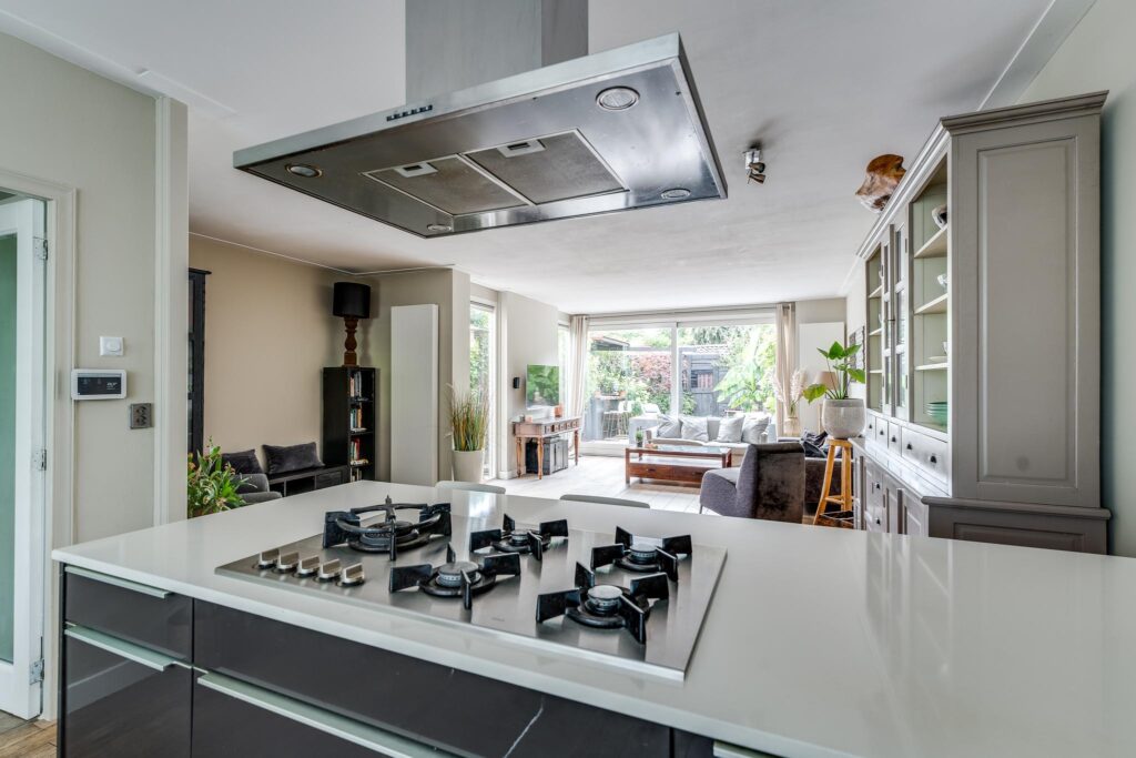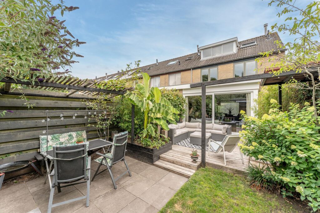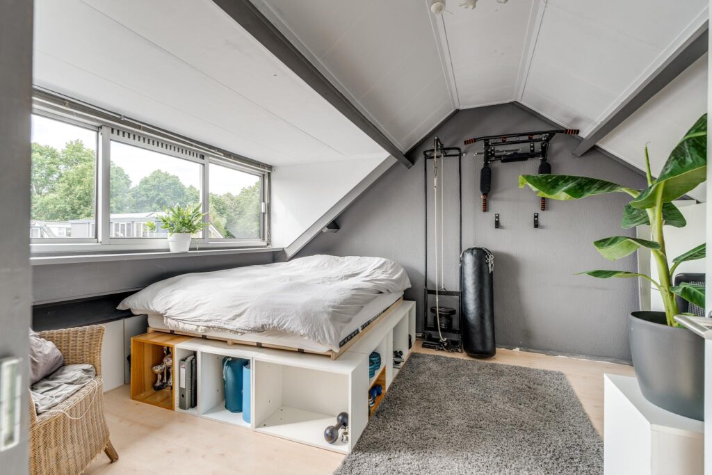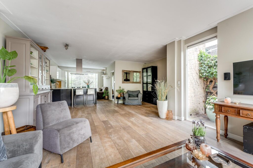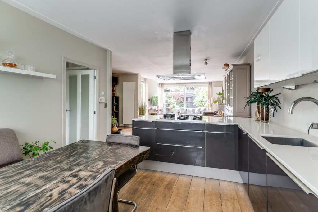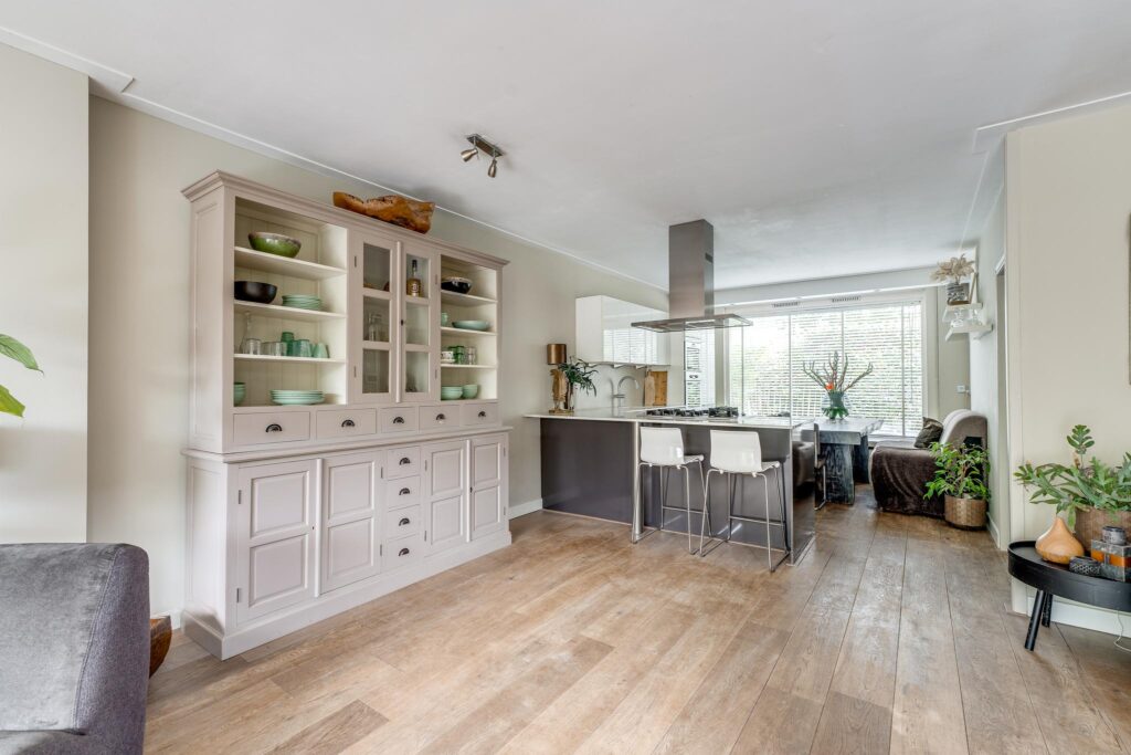 waardoor u gemakkelijk de grote steden kunt bereiken. Indeling Begane grond: via de overkapte entree, binnenkomst in hal met toilet, trapkast en meterkast, toegang tot de ruime woon-/eetkamer met houten vloer. De moderne open keuken met bar is gelegen aan de voorzijde en is voorzien van diverse inbouwapparatuur zoals: vaatwasser, 5-pits gasfornuis, koel-vriescombinatie, magnetron en oven. De uitbouw met extra zijramen zorgt voor veel natuurlijk licht. Aan de achterzijde zit een doorgang met schuifpui naar de tuin met Spaanse invloeden. De tuin ligt op het noordwesten met een leuke bar en zithoek. Achter in de tuin is een schuur te vinden met een overkapping voor bijvoorbeeld fietsen. De tuin is ook te bereiken via de achterom. Eerste verdieping: overloop welke toegang geeft tot drie in grootte variërende slaapkamers en de nieuwe trendy badkamer met toilet, bad, douche, designradiator en wastafelmeubel. Tweede verdieping: middels vaste trapopgang bereikt u de zolderverdieping met voorzolder waar zich de wasmachine opstelling bevindt en een vierde slaapkamer voorzien van een dakkapel. Bijzonderheden: - gelegen nabij de populaire Loosdrechtse plassen; - eindwoning met 4 slaapkamers; - voorzien van houten vloer; - badkamer is 1,5 jaar geleden vernieuwd; - CV ketel uit 2022; - sfeervolle tuin te bereiken via de schuifpui, met schuur en achterom; - de buitenzijde van de woning is in juli 2023 geschilderd; - trampoline in de voortuin; - genoeg parkeerplaatsen voor de deur; - energielabel C geldig tot 20-07-2033; - oplevering in overleg.