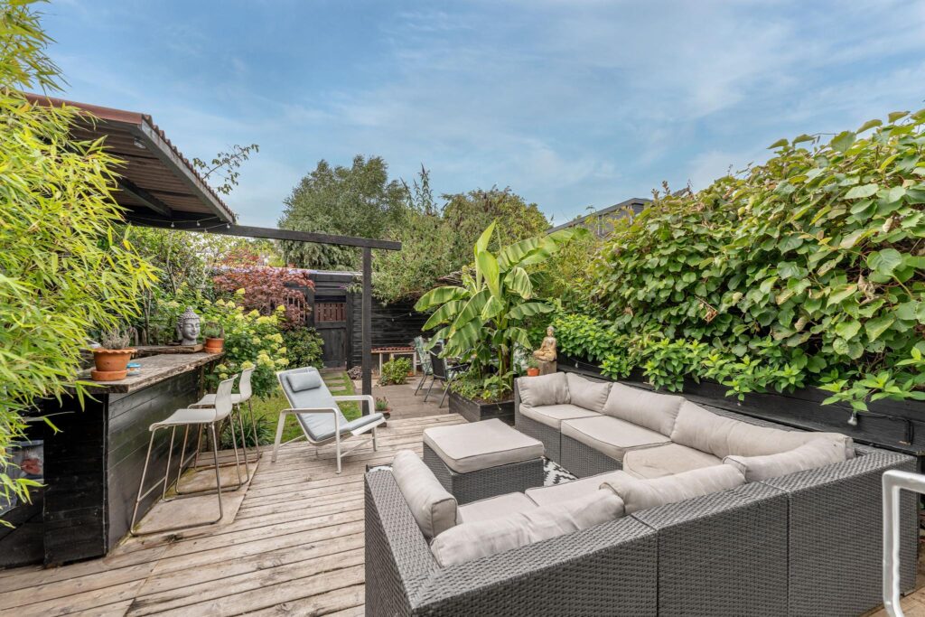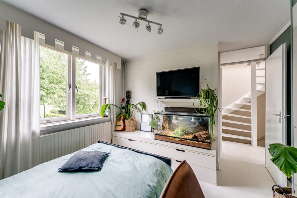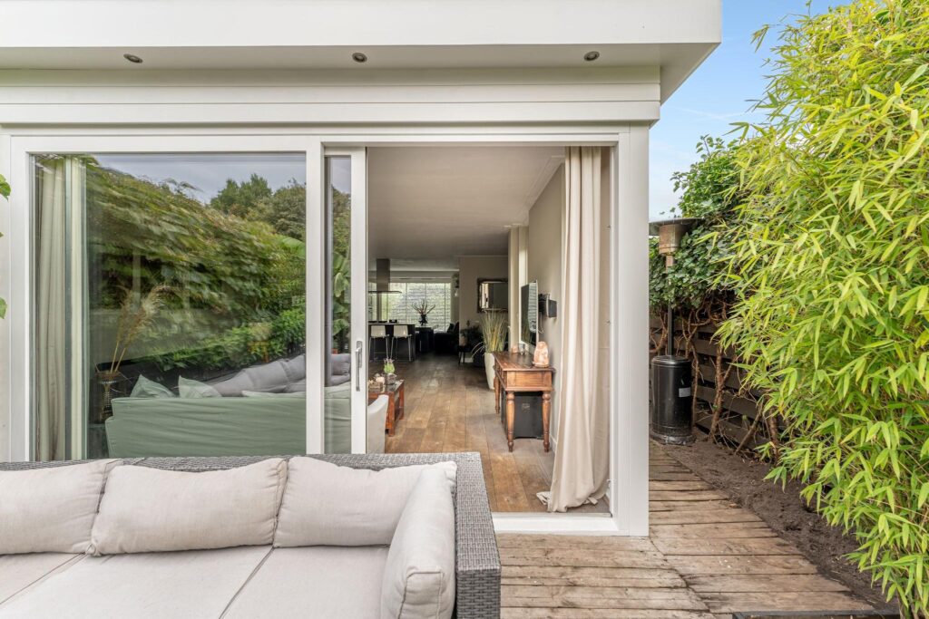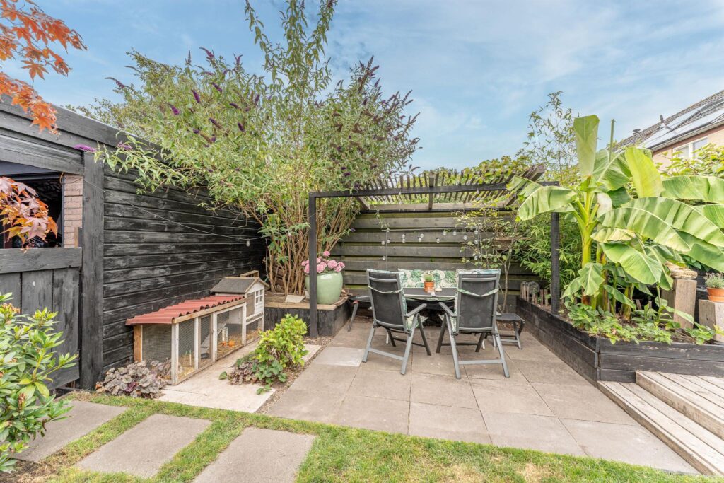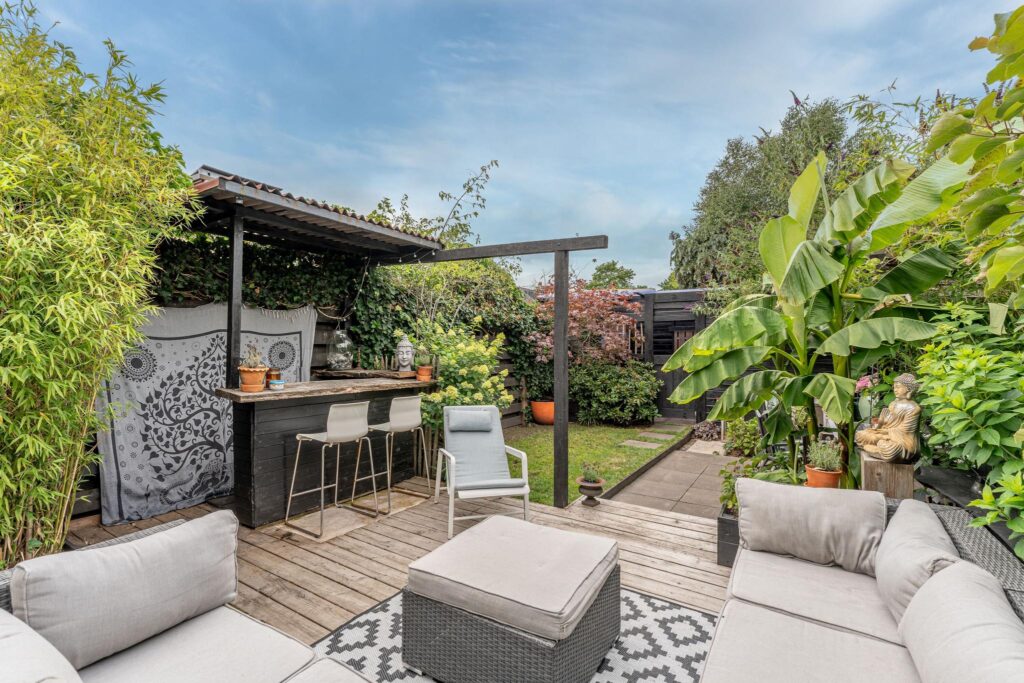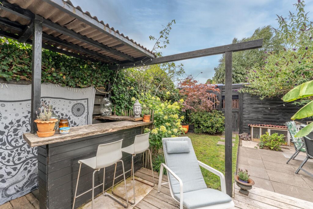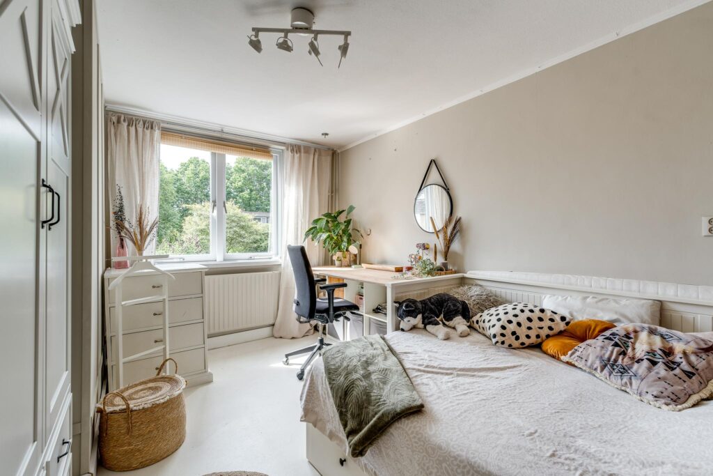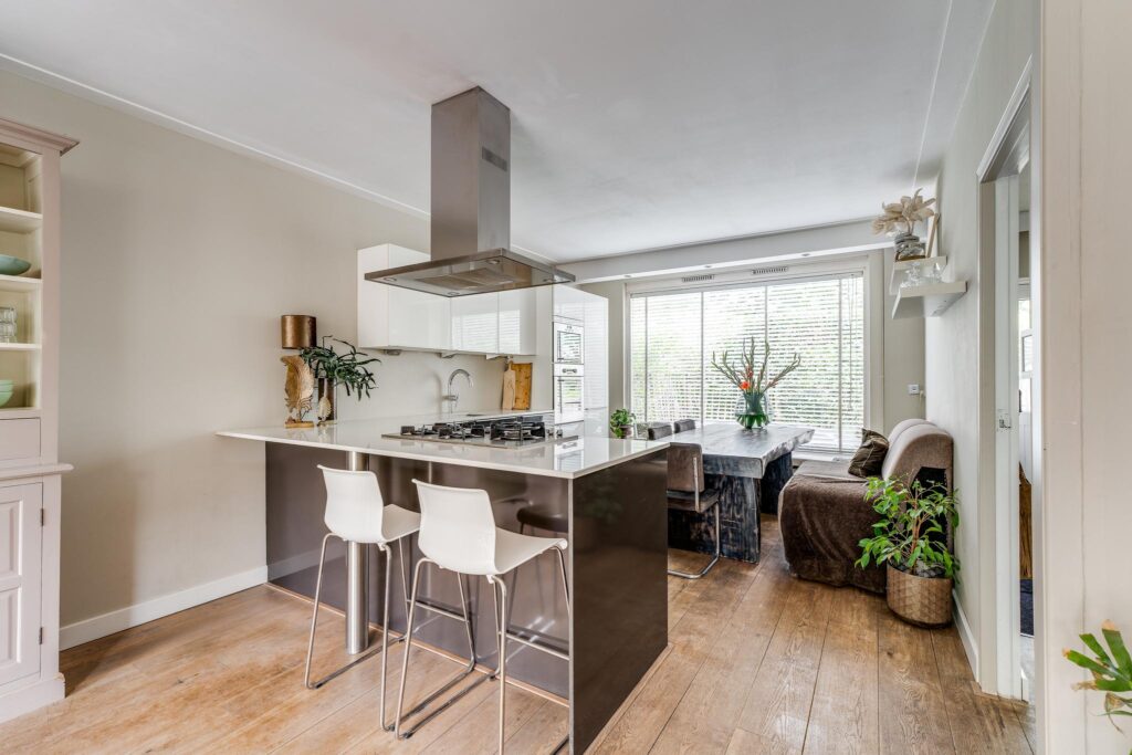waardoor u gemakkelijk de grote steden kunt bereiken. Indeling Begane grond: via de overkapte entree, binnenkomst in hal met toilet, trapkast en meterkast, toegang tot de ruime woon-/eetkamer met houten vloer. De moderne open keuken met bar is gelegen aan de voorzijde en is voorzien van diverse inbouwapparatuur zoals: vaatwasser, 5-pits gasfornuis, koel-vriescombinatie, magnetron en oven. De uitbouw met extra zijramen zorgt voor veel natuurlijk licht. Aan de achterzijde zit een doorgang met schuifpui naar de tuin met Spaanse invloeden. De tuin ligt op het noordwesten met een leuke bar en zithoek. Achter in de tuin is een schuur te vinden met een overkapping voor bijvoorbeeld fietsen. De tuin is ook te bereiken via de achterom. Eerste verdieping: overloop welke toegang geeft tot drie in grootte variërende slaapkamers en de nieuwe trendy badkamer met toilet, bad, douche, designradiator en wastafelmeubel. Tweede verdieping: middels vaste trapopgang bereikt u de zolderverdieping met voorzolder waar zich de wasmachine opstelling bevindt en een vierde slaapkamer voorzien van een dakkapel. Bijzonderheden: - gelegen nabij de populaire Loosdrechtse plassen; - eindwoning met 4 slaapkamers; - voorzien van houten vloer; - badkamer is 1,5 jaar geleden vernieuwd; - CV ketel uit 2022; - sfeervolle tuin te bereiken via de schuifpui, met schuur en achterom; - de buitenzijde van de woning is in juli 2023 geschilderd; - trampoline in de voortuin; - genoeg parkeerplaatsen voor de deur; - energielabel C geldig tot 20-07-2033; - oplevering in overleg.